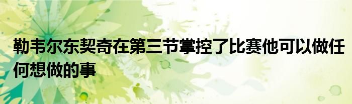 談到東契奇,勒韋爾說道:“東契奇在第三節掌控了比賽,他可以去任何他想去的地方,做任何他想做的事情。他把射手們都調動起來了,而我們什么都沒做。他進入了節奏,射手們也進入了節奏,他們還有一些空接。他基本上在第三節掌控了整場比賽。”