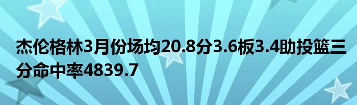 據統計,格林三月份狀態出色,他出戰17場比賽,場均20.8分3.6籃板3.4助攻,投籃命中率48%,三分命中率39.7%,罰球命中率76.6%。