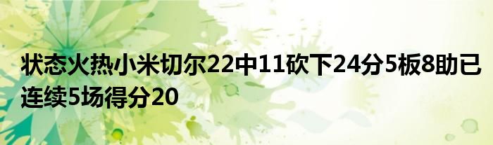 據統計,小米切爾已連續5場得分20+。過去五場比賽,他場均24分8.4助攻,三項命中率49%、39%、100%,國王取得3勝2負。