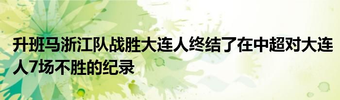 7月6日晚上,中超第9輪,升班馬浙江隊2-0戰勝大連人,終結了在中超對大連人7場不勝的紀錄。