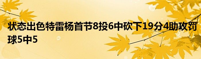第一節(jié)比賽,老鷹球星特雷-楊狀態(tài)出色,單節(jié)8投6中,三分4中2、罰球5中5,砍下19分4助攻1搶斷。