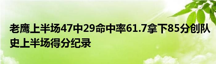 數(shù)據(jù)顯示,半場(chǎng)85分創(chuàng)下了老鷹隊(duì)史上半場(chǎng)得分紀(jì)錄!!