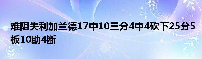本場比賽,騎士后衛加蘭德出場37分鐘,投籃17中10,三分4中4,罰球2中1,砍下25分5籃板10助攻4搶斷,出現4次失誤,正負值為全隊最高的+10。