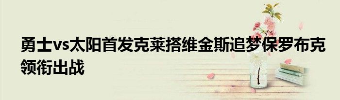 3月31日訊 上午10點,勇士將在主場迎戰太陽。