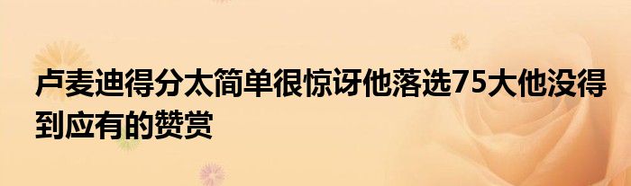 “很驚訝他落選75大巨星,他們都會看你有沒有冠軍,但他一人扛起球隊。他是頂級球員,2次得分王、多次全明星,盡管他背部有問題,他的傳球能力沒被人贊賞,他是一個6尺9的控衛,但沒有人會以控衛稱呼他,總之他沒有得到應有的贊賞。”