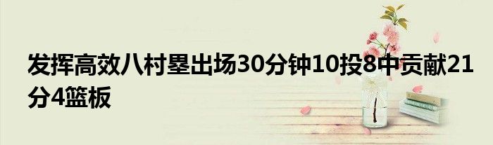 此役,八村塁出場30分鐘39秒,投籃10投8中,三分3投2中,罰球4罰3中,貢獻21分4籃板。