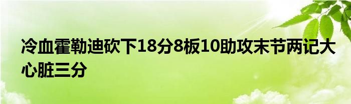 本場比賽,霍勒迪表現出色,他全場出戰40分鐘,16投7中、其中三分球6中2,砍下18分8板10助攻1搶斷!