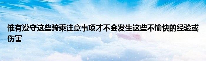 騎馬是一種很安全的活動,但任何一種活動,都有其潛在的危險性,其實這往往是由人為疏忽或是過于自信所造成。惟有遵守這些騎乘注意事項,才不會發生這些不愉快的經驗或傷害。