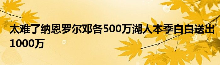 納恩本賽季的薪資為500萬(wàn)美元,湖人還會(huì)支付洛爾-鄧500萬(wàn)美元,這樣,湖人將白白支付共計(jì)1000萬(wàn)美元。
