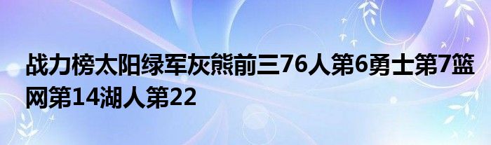 3月29日訊 今日,NBA官方公布了最新一期的球隊戰力榜,太陽、凱爾特人、灰熊位居前三位,獨行俠殺入前五。76人和勇士各提升一位,籃網升至第十四,湖人仍居第二十二。