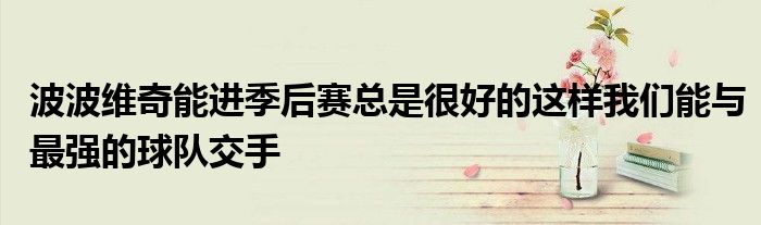 談到球隊打進季后賽的希望以及意義,波波維奇說道:“如果能打進季后賽,那么你就能和聯盟中最好的球隊交手。所以如果能繼續打球,那肯定是極好的。”