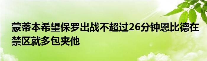 談到保羅的出場時間時,蒙蒂說道:“對于他的出場時間,我兩次都說謊了。我原本希望他的時間不超過26分鐘,但是他回來的那場是30分鐘,今天他打了36分鐘。我想他的身體得到了一個機會去休息,但很可能他在精神上并沒有休息。”