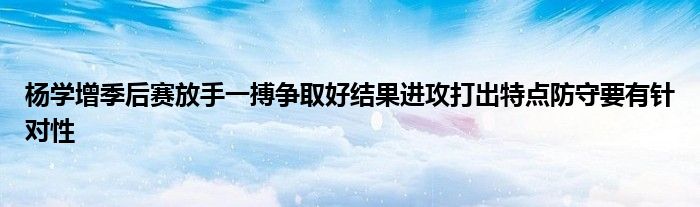 3月28日訊 山西主帥楊學增今天接受了采訪。
