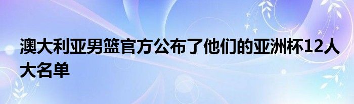 澳大利亞男籃官方公布了他們的亞洲杯12人大名單,其中此前參加了世界杯亞洲區預選賽的德拉維多瓦缺席,索恩-梅克則是仍在名單之中。