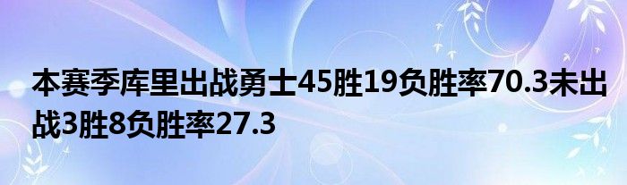 值得一提的是,本賽季庫里出戰的比賽,勇士隊取得了45勝19負,勝率高達70.3%;