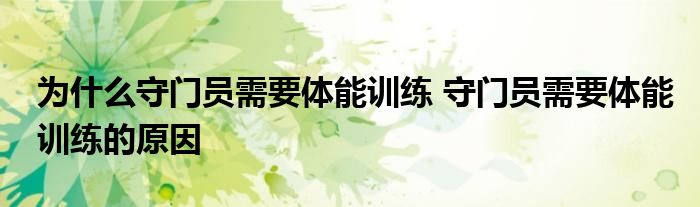 大家好,小美來為大家解答以上問題。為什么守門員需要體能訓練,守門員需要體能訓練的原因很多人還不知道,現在讓我們一起來看看吧!