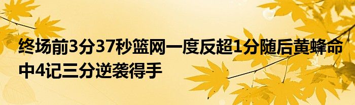 末節最后3分21秒,黃蜂命中4記三分,最終拿下比賽。