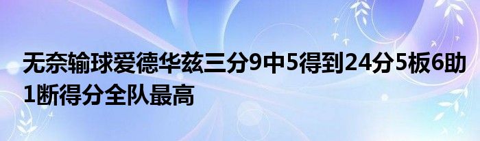 本場比賽,森林狼球員愛德華茲有著不錯的發揮,他首發出場37分11秒,16投9中,三分9中5、罰球1中1,得到全隊最高的24分,還有5籃板6助攻1搶斷的數據,同時還有5次失誤。