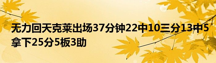 本場比賽,勇士球星克萊-湯普森出場37分鐘,投籃22中10,三分13中5,沒有罰球,拿下25分5籃板3助攻。