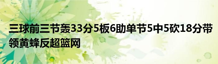 前三節,三球轟下33分5籃板6助攻3搶斷。