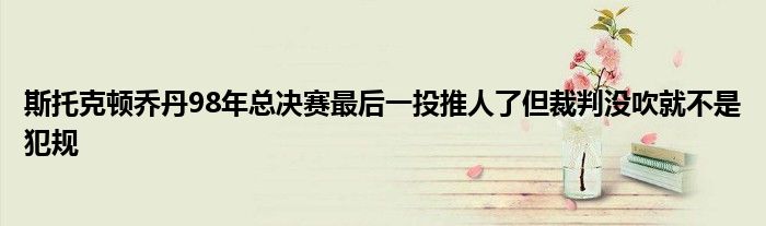 談到喬丹那球是否推了防守他的布萊恩-拉塞爾時,斯托克頓說道:“毫無疑問,喬丹推了。你是否這樣認為那就另當別論了。防守他的拉塞爾因這球受到指責。我認為拉塞爾很好地限制了喬丹,喬丹那個系列賽命中率是他生涯總決賽中最低的。他主防喬丹,并且防得很好。”