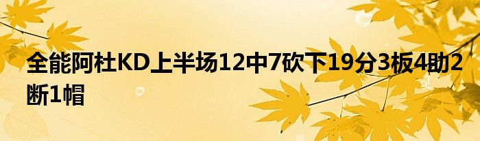 上半場比賽,杜蘭特狀態不錯,他12投7中砍下19分3籃板4助攻2搶斷1蓋帽的全能數據,率領球隊領先熱火21分!