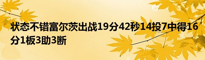 本場比賽,魔術后衛富爾茨出戰19分42秒,加時賽未出戰,全場14投7中,罰球1中1,共得到16分1籃板3助攻3搶斷。