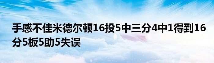 本場比賽,雄鹿球員米德爾頓手感不佳,他首發出場28分42秒,16投5中,三分4中1、罰球5中5,得到16分5籃板5助攻,同時還有5次失誤,正負值為-10。