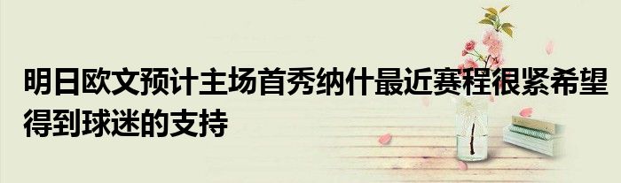 談及歐文明日預計將完成賽季主場首秀,納什說道:“因為賽程很緊張,所以如果能從主場觀眾那得到一些支持那就更棒了。”明日上午7點30分,籃網將坐鎮主場迎戰黃蜂。