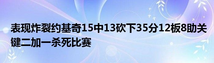 掘金球星約基奇本場(chǎng)比賽表現(xiàn)炸裂,他全場(chǎng)比賽出戰(zhàn)35分鐘,15投13中,三分1中0,罰球10中9,砍下了35分12籃板8助攻1搶斷2蓋帽的全面數(shù)據(jù)。