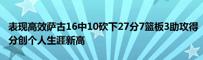 全場比賽,薩古上陣26分鐘16投10中,三分4中2、罰球8中5,砍下27分7籃板3助攻1蓋帽,得分創個人生涯紀錄,此前是21分。