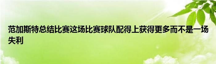 范加斯特總結比賽表示:“大家好,這場比賽球隊配得上獲得更多,而不是一場失利。對方兩腳打門,進了兩個球,其中一個還是定位球。我們下半場也是取得了很多機會,只是非常可惜沒有把握住。但是總的來說無論是整個球隊還是年輕的球員,總體還是在上升的趨勢。大家還是取得進步,這是積極的方面。”當被問及“10連敗后間歇期中球隊有何辦法改變局面”,范加斯特表示:“首先要更正一下,我們是輸了9場,還是有一場獲得了3分。在間歇期還是回去再看一下,怎么去做一些調整。”
