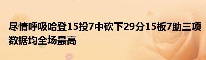 此役,76人球星哈登發(fā)揮出色,全場比賽出戰(zhàn)34分鐘,15投7中,三分球9中4,11罰全中砍下全場最高的29分15板7助2斷1蓋帽,+/-值+28。