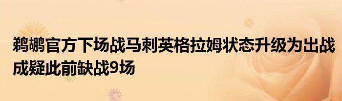 據鵜鶘官方報道,球隊核心英格拉姆狀態升級,本場比賽被列為出戰成疑,此前他因右腿筋酸痛已經連續缺席了球隊9場比賽。