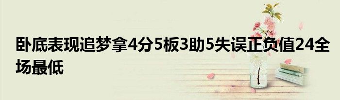 本場比賽,追夢打出了堪稱戰犯的表現,全場比賽他出戰24分鐘,3投1中拿下4分5籃板3助攻,出現5次失誤,正負值-24全場最低。