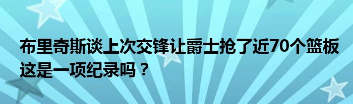 在談到本賽季雙方首次交鋒中爵士總共搶了近70個籃板,布里奇斯驚訝地說道:“70個!我去!這是一項紀錄嗎?這是不是一項紀錄?”