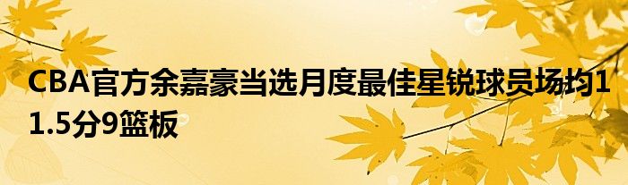 3月26日訊 CBA聯賽官方宣布,浙江男籃新星余嘉豪當選本賽季第四期“戰馬月度最佳星銳球員”