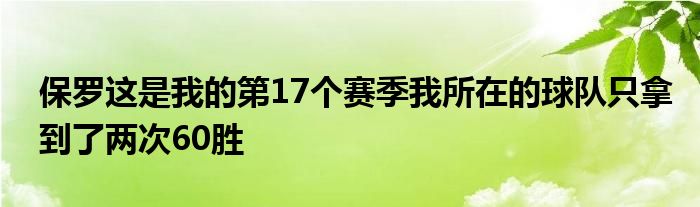談到球隊本賽季已經(jīng)拿到60勝,保羅說道:“這很特別,這是我的第17個賽季,但我所在的球隊只拿到了兩次60勝。”