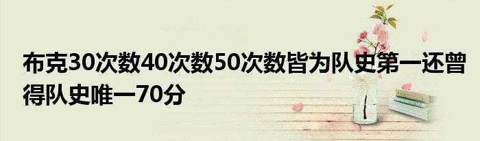 據(jù)統(tǒng)計(jì),布克137次30+、17次40+、3次50+都是隊(duì)史最多。另外,布克有1次60+與湯姆-錢伯斯并列隊(duì)史第一,而單場(chǎng)70分是隊(duì)史唯一。