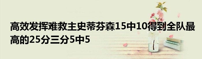 全場比賽,史蒂芬森替補出戰22分44秒,投籃15中10,三分5中5,得到全隊最高的25分外加2籃板2助攻,正負值-3。