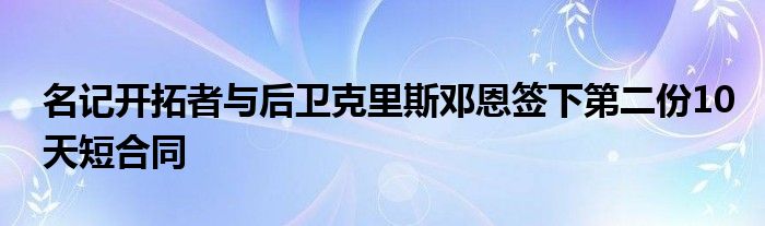 3月25日訊 據名記Woj報道,消息源透露,開拓者與后衛克里斯-鄧恩簽下第二份10天短合同。