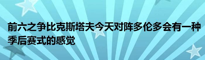 談到本場比賽,比克斯塔夫表示:“今天對陣多倫多會有一種季后賽式的感覺,這場比賽非常重要而且猛龍陣中擁有總冠軍經驗的球員。我們預計這將是一場艱難的比賽,但我們也希望它是一場有趣的比賽。”