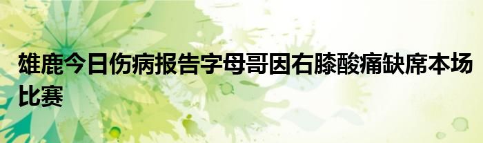 賽前雄鹿官推發布了球隊今日的傷病報告,雙向球員威金頓可以出戰。字母哥因為右膝酸痛將缺席本場比賽,米德爾頓、本布里也將缺席本場比賽。