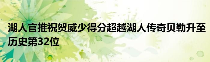 湖人官推寫道:“祝賀威少得分超越湖人傳奇埃爾金-貝勒升至歷史第32位。
