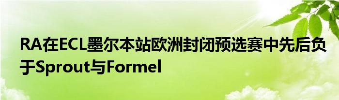 RA在ECL墨爾本站歐洲封閉預選賽中先后負于Sprout與Formel,最終以7-8th的名次遭到淘汰。