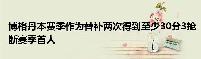 博格丹成為本賽季唯一一個(gè)兩次得到至少30分3搶斷的替補(bǔ)。在此前對(duì)陣灰熊隊(duì)的比賽中,他出場(chǎng)29分鐘,得到30分2籃板3助攻3搶斷。