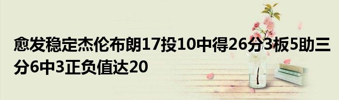 本場(chǎng)比賽,杰倫-布朗再有高效發(fā)揮,全場(chǎng)他出戰(zhàn)32分鐘,17投10中得到了26分3板5助,他的正負(fù)值為+20。