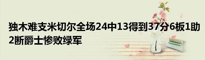 爵士球星米切爾今日出場34分42秒,投籃24中13,三分12中3,罰球8中8,得到37分6籃板1助攻2搶斷。