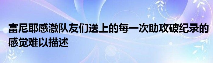 關于自己刷新尼克斯隊史單賽季三分命中數紀錄一事,富尼耶表示:“我很高興也很自豪,很感激隊友們送上的每一次助攻,能破紀錄離不開大家的幫助。事實上,尼克斯是一家具有悠久歷史的大球會,從約翰-斯塔克斯這么有名的前輩手中拿走紀錄,這種感覺難以用言語描述?!?/p>