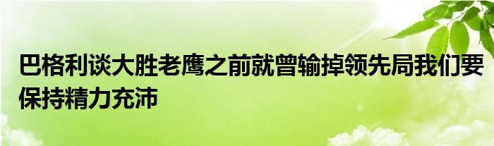 談到這次大勝老鷹,巴格利講道:“自從我來到這支球隊以后,我們就曾輸掉了一些握有領先優勢的比賽,這是球隊在討論的問題,我們要保持精力充沛,像比分還在0-0時一樣競爭。”
